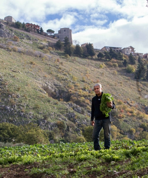 Gli ortaggi e le verdure di Casa Iuorio sono coltivati seguendo i dettami dell’agricoltura sostenibile, nel rispetto dei cicli della terra e delle stagioni. I semi appartengono a varietà autoctone, le colture crescono in ambienti sani e naturali, senza utilizzo di serre e altri metodi di coltivazione intensiva. Anche questo è il loro impegno per la promozione della biodiversità del territorio. Le coltivazioni sono fatte in campo aperto e senza usare agenti chimici, nei terreni di Palomonte (SA). La raccolta è fatta a mano, senza l’ausilio di mezzi meccanici.
